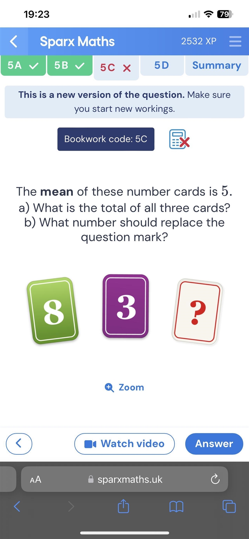 (8 + 3 + X)/3 = 5 [the sum of the numbers divided by the number of numbers ,3)