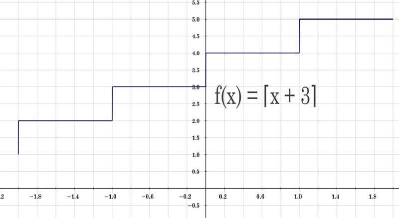 For example for say x = -1.6, then x + 3 becomes -1.6 + 3 = 1.4, now what's the ceiling for 1.4? or namely, what's the highest integer that's between? well, is between the integers of 1 and 2, the "ceiling" will be 2, so the 1.4 becomes 2, same is true for 1.1 or 1.0000001 or 1.999999, they all "hit the ceiling".