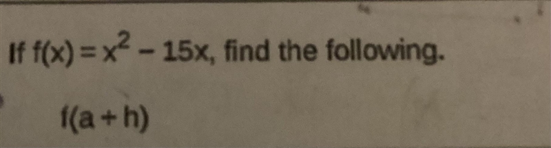 f(a + h) = (a + h)² - 15(a + h) = a² + 2ah + h² - 15a - 15h =