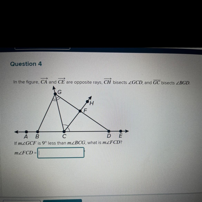 Since CH bisects ∠GCD then m∠GCF = m∠FCD.