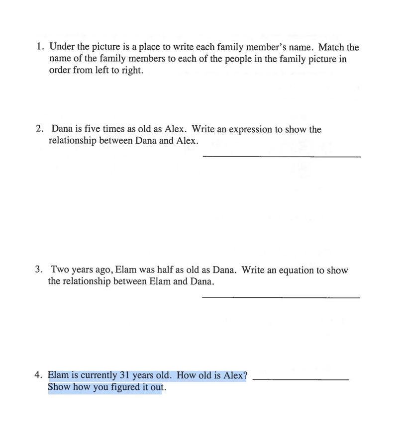 Now use the answer to 2. to find the age of Alex.