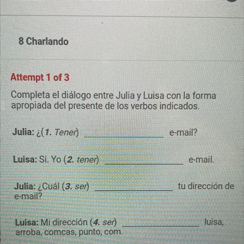 Julia: ¿Cuál (3. ser) tu direccion de e-mail?