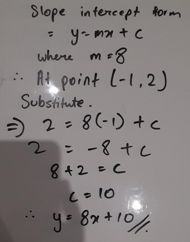 Hope this helps. Just Substitute the values given in a general equation of line. DIAGRAM PROVIDED