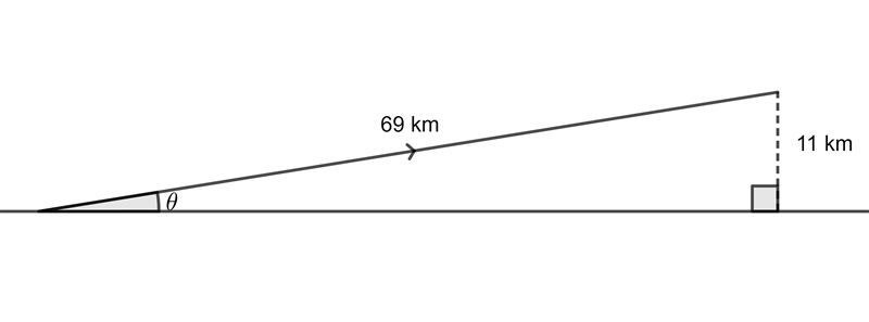 Therefore, the smallest possible angle that the path of the plane could make with the ground is approximately 9.17° when it travels a distance of 69 km during take-off.