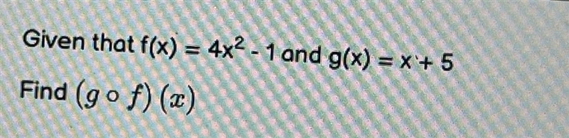 Given that f(x) = 4x^2 - 1 and g(x) = x + 5, find (g ∘ f) (x)