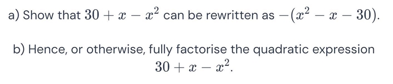 30 + x - x² ← factor out - 1 from each term and rearrange