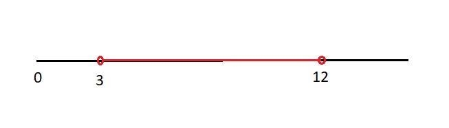 x is between 3 and 12 but does not INCLUDE 3 or 12