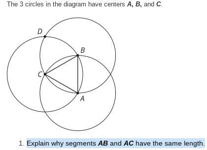 AB and AC are radii of Circle A.