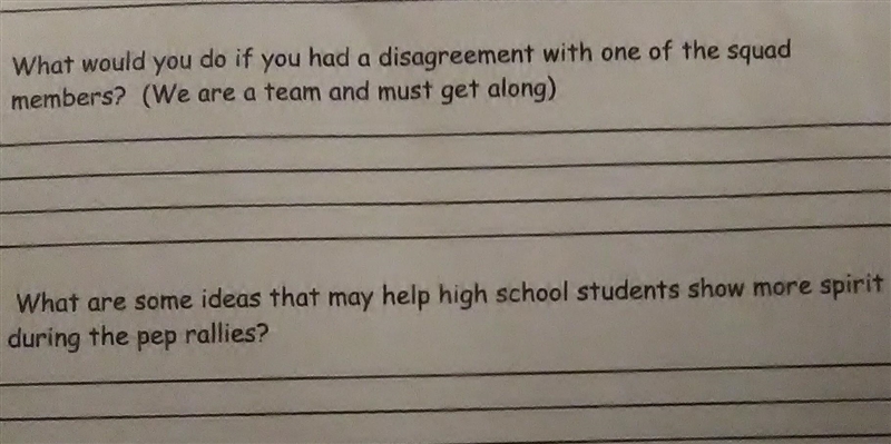 **IMPORTANT A LOT OF POINTS** I am signing up for cheer and I am asked some questions. I need the best answer possible. Please help me I want to be on the cheer team!!