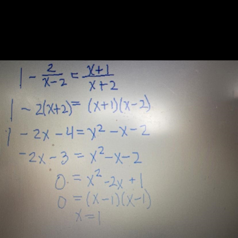 1 - 2/(x-2) = 1 - 1/(x+2)