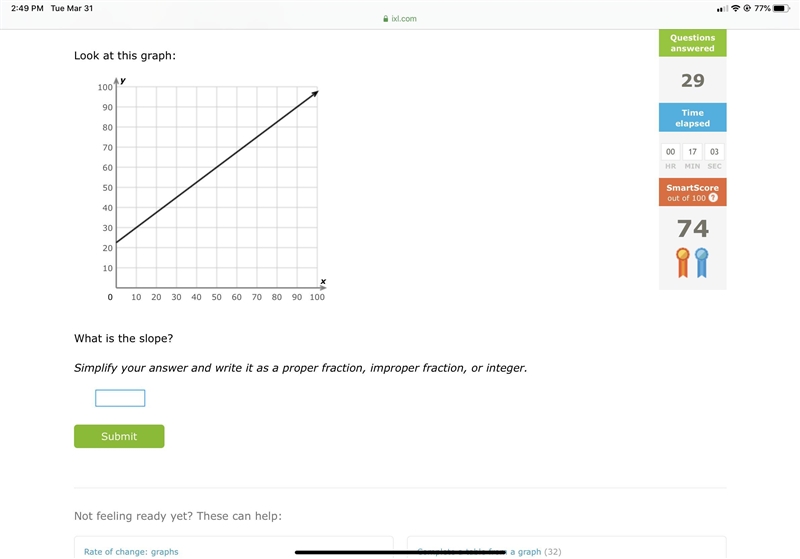 From graph, points picked on the y-axis are 90 and 30, now trace this points to the x-axis, 90 on the y-axis is 90 on the x-axis and 30 on the y-axis is 10 on the x-axis.