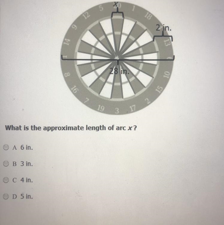 The approximated length of arc x is 4 inches ⇒ C