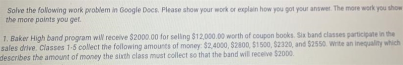 6 band classes collect money by the sales drive. We need to determine the money that they need to collect so that the band will receive $2,000.