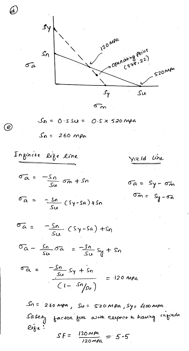 Mean and alternating stresses in the bulk of the bolt are 378 MPa and 10 MPa.