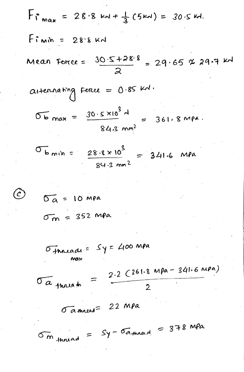 Alternating and mean forces on the bolt are 0.85 kN and 29.65 kN respectively.