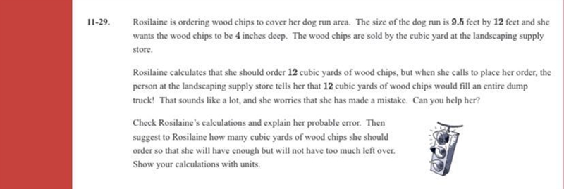 This means Rosilaine should buy 2 cubic yards of wood chips.