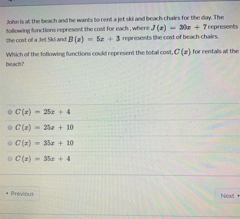 => Total cost = J(x) + B(x) = 30x + 7 + 5x + 3 = 35x + 10