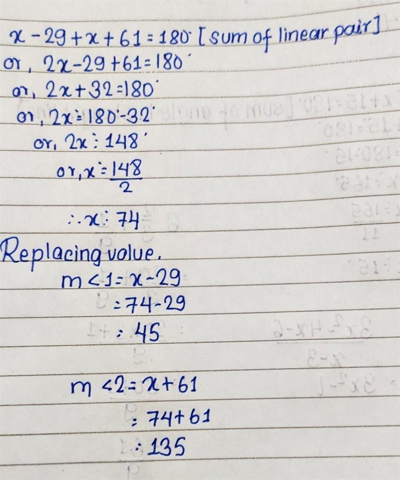 m<1=45, m<2=135