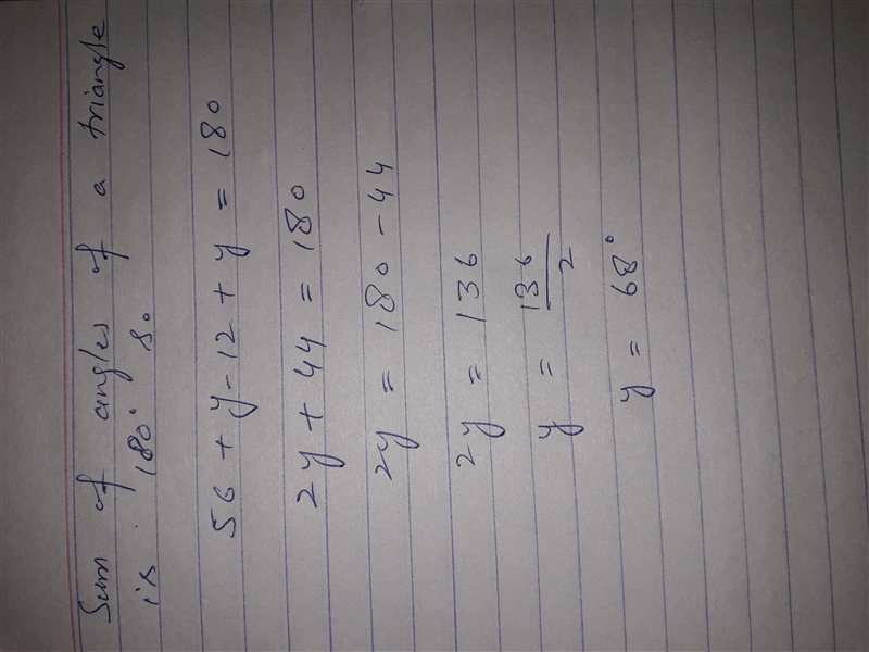 URGENT plz help What is the value of y? A.44° B.112° C.68° D.56°