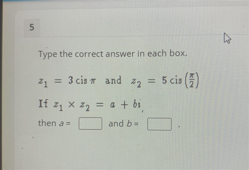 z1 × z2 = (3 cis π)(5 cis π/2)