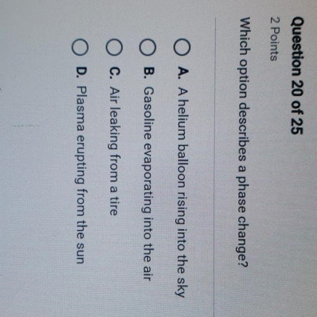 Which option describes a phase change