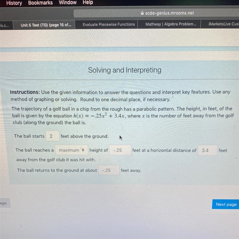 Answer: 0 ft, maximum, 11.6 ft, 6.8 ft, 13.6 ft
