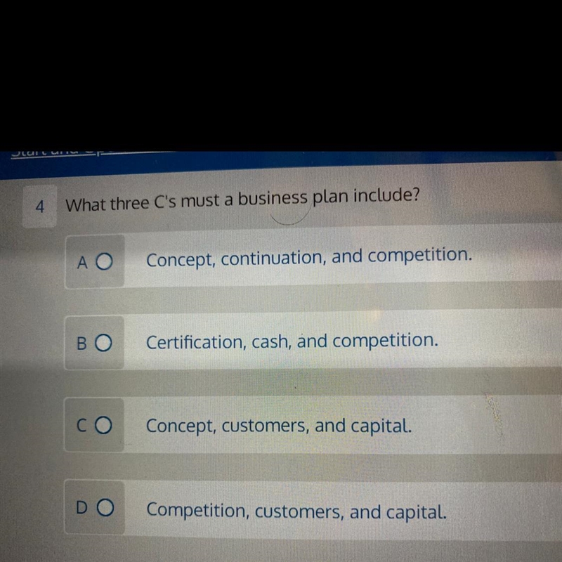 What three C’s must a business plan include?-example-1