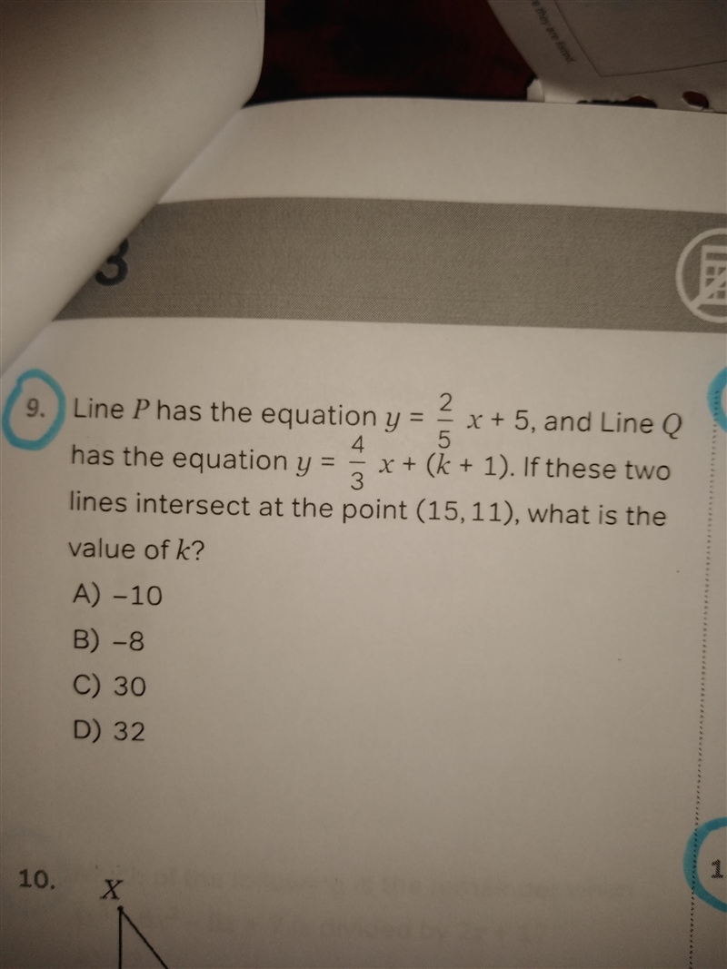 We know that (15, 11) (which means x = 15, y = 11) is a solution to Line Q so therefore: