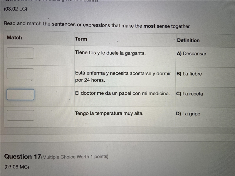 Esta enferma y tiene que acostarse y dormir por 24 horas= A descansar