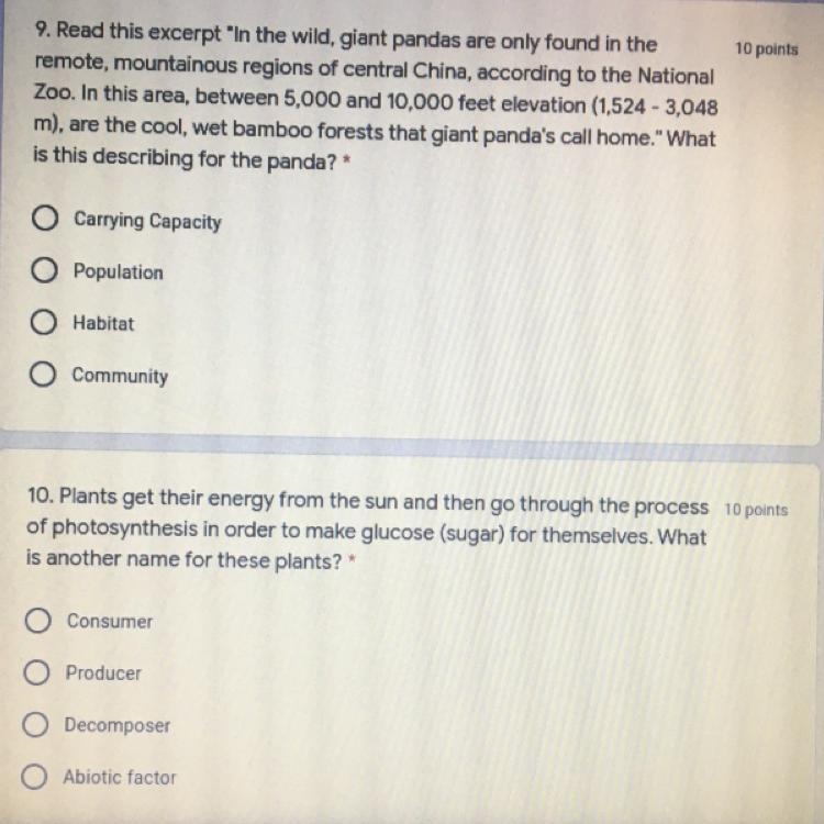 10: Producer, because plants are producers. They are not composers or decomposers and they most certainly are not Abiotic Factors.