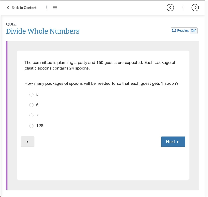 150 divided by 24 equals 6.25 but round it up so everyone gets one.