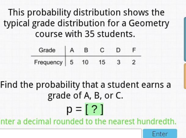 the probability that a student earns a grade of A, B, or C is 6/7.