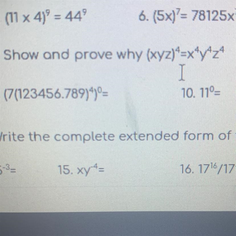 5. Show and prove why (xyz)to the power of 4=x to the power of 4 +y to the power of 4+z to the power of 4