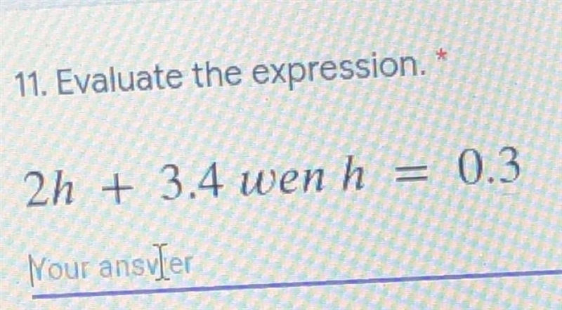 The correct answer should be 4. 2 times 0.3 is 0.6. 3.4 plus 0.6 equals 4. ;)