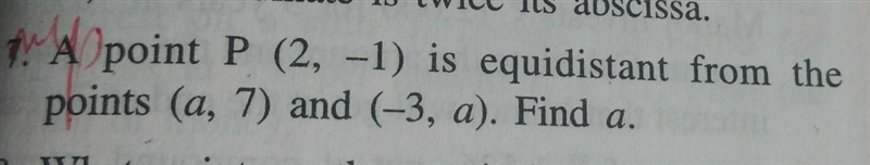 \sqrt{ ({ - 1 - 7})^(2) + ({2 - a})^(2) } = \sqrt{ ({ - 1 - a})^(2) + ({2 - ( - 3)})^(2) } \\