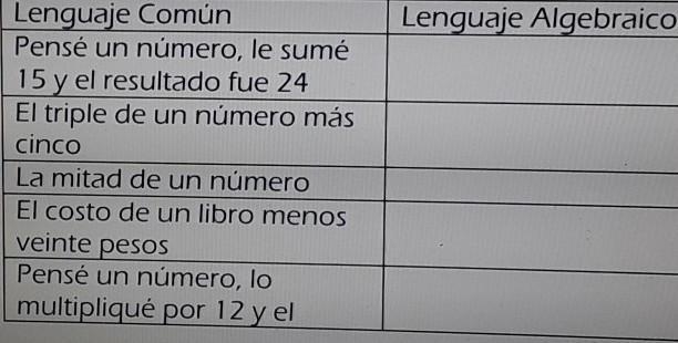 Expresa en lenguaje algebraico lo siguiente
