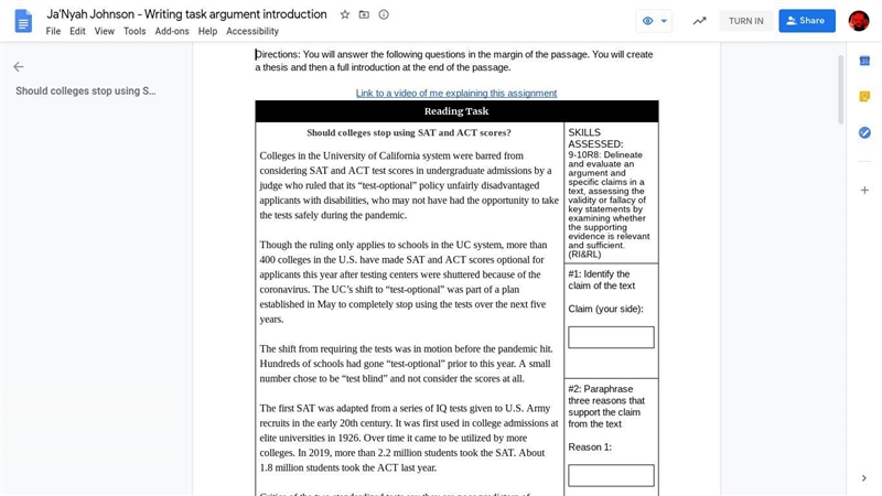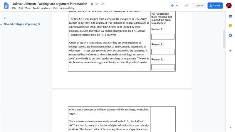 Like i guess like find one claim which would be one side and find another claim for the other side and find reasons that support the claims that both sides are trying to prove-