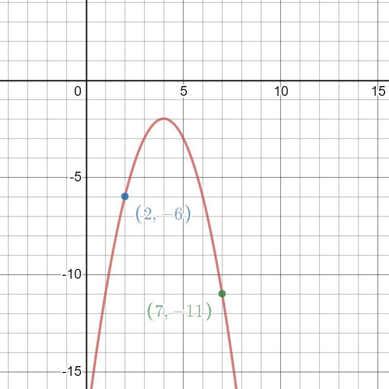 A quadratic function has an axis of symmetry at x=4 and contains the points (2, -6) and-example-1