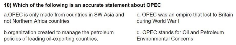 OPEC stands for Oil and Pertroleum Envirmental Concerns