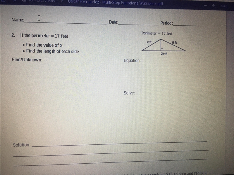 ∵ The length of its sides are x ft, 2x ft, and 5 ft