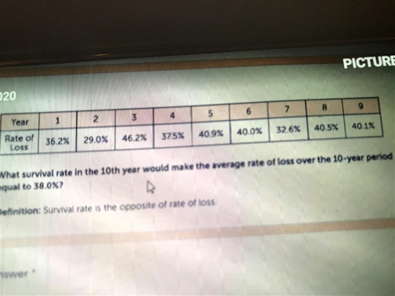 What survival rate in the 10th year would make the average of loss over the 10 year period equal to 38.0%