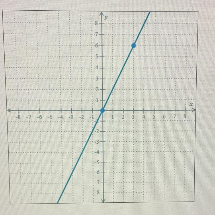 Since we know two points by observing the graph (0,0) and (3,6). m = y2-y1/x2-x1 = 6-0/3-0 = 6/3 = 2/1 = 2