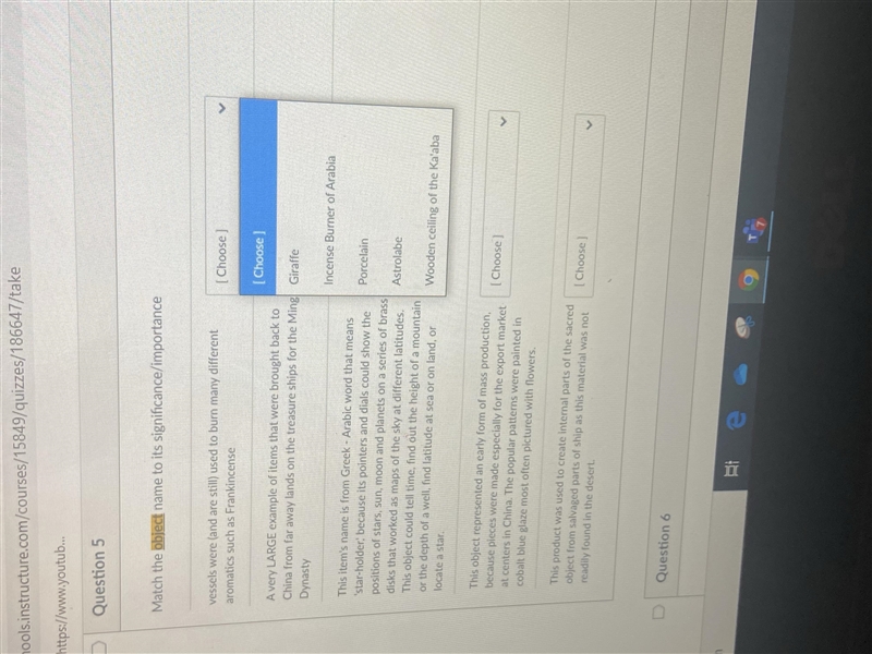 It mentions burning incense and different aromatics. The only option that would make slight sense would be the incense burner. Giraffes definitely don't burn incense, neither do porcelain (a type of material), astrolabes (a form of navigating the seas), and the wooden ceiling of the Ka'aba.