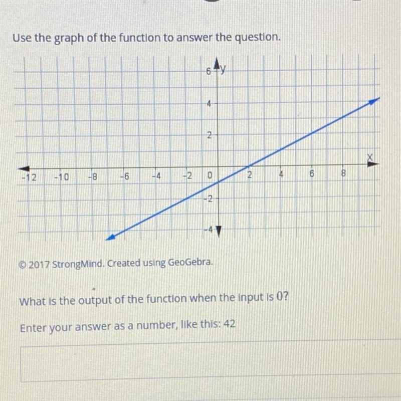 so the question is asking what does the y value( output) have to be for the x value( input) to be zero.