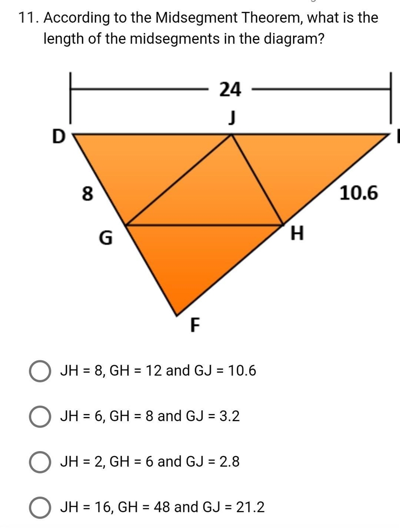GH = 12, JH = 8, GJ = 10.6, your answer is the first choice