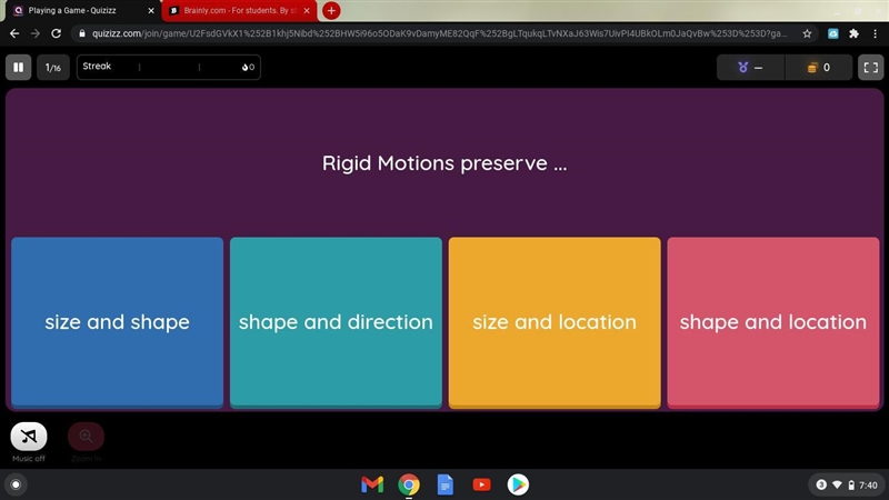 What do rigid motions preserve a:size and shape b:shape and direction c:size and location-example-1