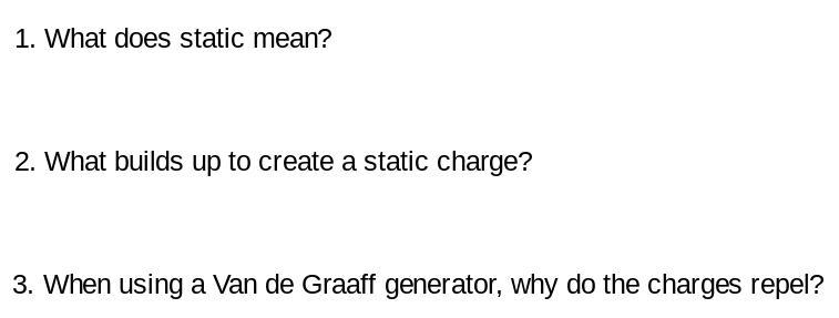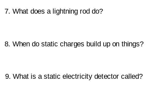 Lightning rods (and the accompanying protection system) are designed to protect a house or building from a direct lightning strike and, in particular, a lightning-initiated fire, Static electricity is the result of an imbalance between negative and positive charges in an object. These charges can build up on the surface of an object until they find a way to be released or discharged. One way to discharge them is through a circuit, and An electroscope is an early scientific instrument used to detect the presence of electric charge on a body. It detects charge by the movement of a test object due to the Coulomb electrostatic force on it.