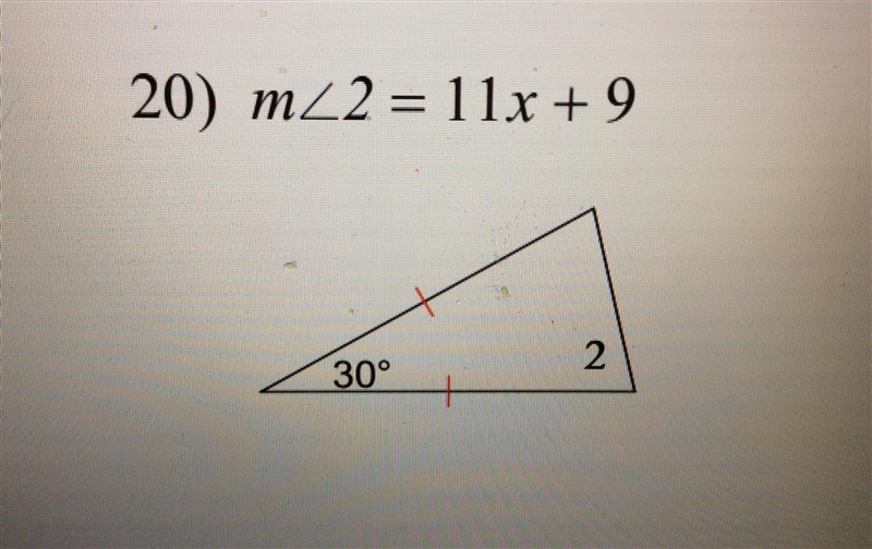 In the given triangle two sides are equal and so it is an isosceles triangle. So, the angles opposite to equal sides are equal