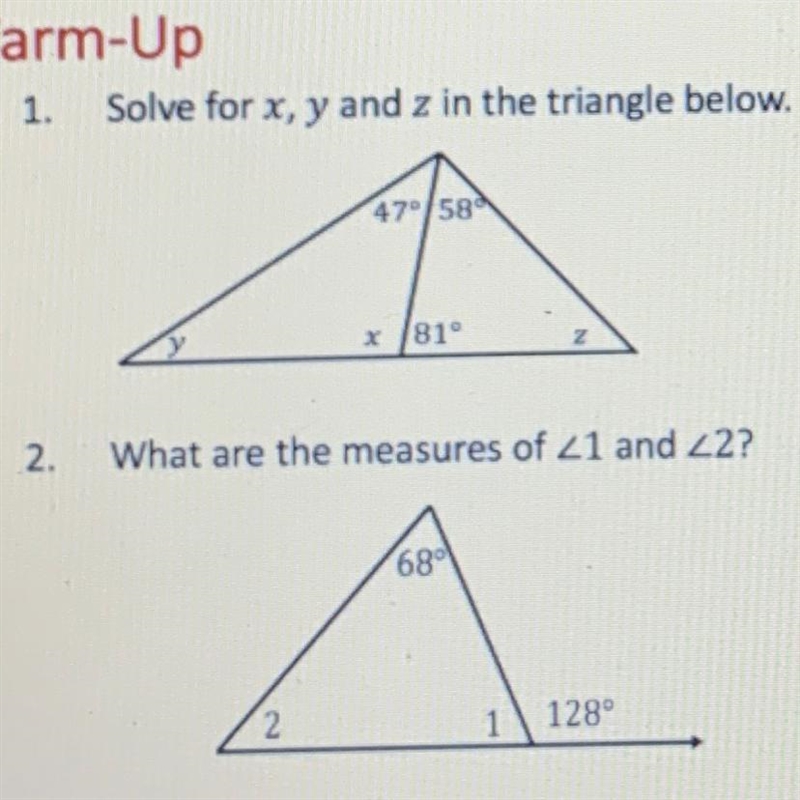 52 + 68 + 2 = 180 (sum of angles of triangle)